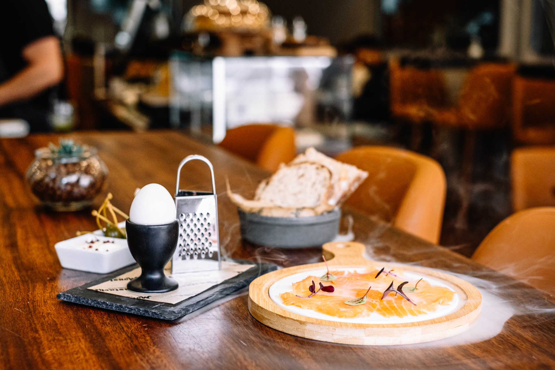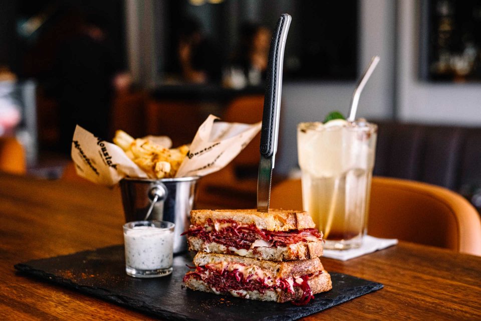 A partir da hora de almoço são também servidas sanduíches, saladas e petiscos para partilhar, ou não. A sanduíche Reuben, feita com pastrami de carne arouquesa, queijo, coleslaw (salada da casa) e molho russo, em pão de fermentação lenta, tem-se revelado uma das favoritas, a par da tábua de salmão fumado, que leva mais um bafo de fumo na mesa, para intensificar o sabor. «Fazemos tudo aqui. O pastrami, o iogurte vegetal, o salmão e o bacalhau fumados”, garante o chef.