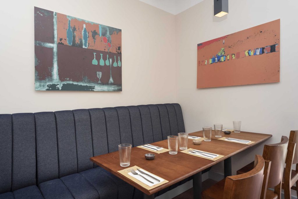 «A ideia foi encontrar um espaço que se identificasse com o das Antas, com um ambiente acolhedor e familiar, e uma zona envolvente com espaço exterior para as crianças brincarem», explica Francisco. A intenção foi bem conseguida. Ainda que mais pequena, a sala mantém a mesma atmosfera aconchegante que ali convida a prolongar a refeição. Seja entre paredes adornadas com pinturas do artista Henrique Silva, na esplanada resguardada por grandes prédios e voltada para um pátio ajardinado.