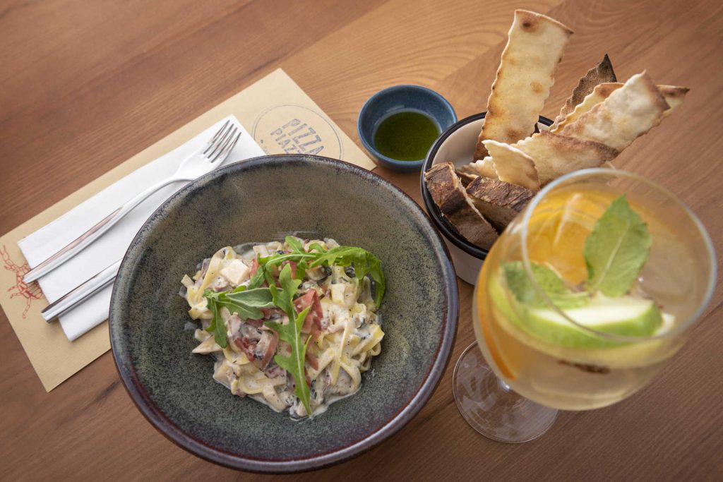 A focaccia al pesto, com parmesão e azeite de trufa, é uma das novidades mais populares da carta do novo Pizza Piazza. «É fresca, aromática e leve. Os clientes têm adorado», garante Francisco Amorim, o proprietário daquele restaurante italiano, que ganhou fama nas Antas e em maio abriu uma nova morada. Desta vez, o lugar escolhido foi no Pinheiro Manso, também numa zona residencial e que facilmente passa despercebida a quem passeia na rua.
