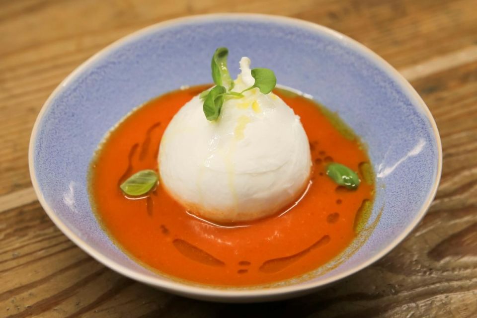 Luís e Inês viajaram até à Campanha, uma das regiões italianas onde se produz mozzarellas para escolher o seu fornecedor e garantir que chegam regularmente em condições impecáveis – incluindo a mais delicada mozzarella, a burrata, com o seu interior cremoso. Ela chega à mesa num creme frio de tomate, azeite e manjericão, que é um prato fresco e ótimo para partilhar, como quase toda carta. Há um menu de degustação de mozzarellas (três variedades por 19 euros), mas a carta tem todas as opções discriminadas e indica que mais vale partilhar os petiscos.