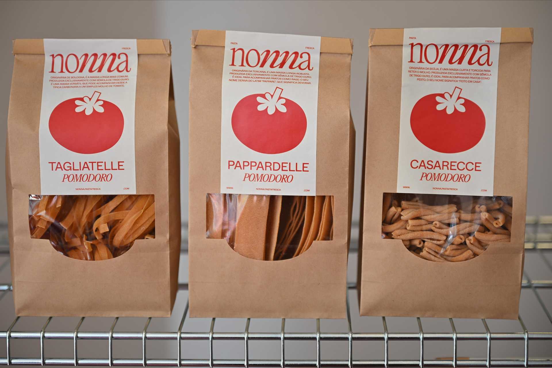 Na Nonna, há produção diária de massas. As frescas devem ser encomendadas no dia anterior; as secas são massas frescas desidratadas segundo um processo natural, o que lhes garante maior longevidade e permite que sejam enviadas por correio para todo o país, esclarece a mentora do projeto. Isso acontece no piso inferior, que funciona como fábrica – alimentada com produtos italianos, da farinha de sêmola de trigo duro aos queijos.