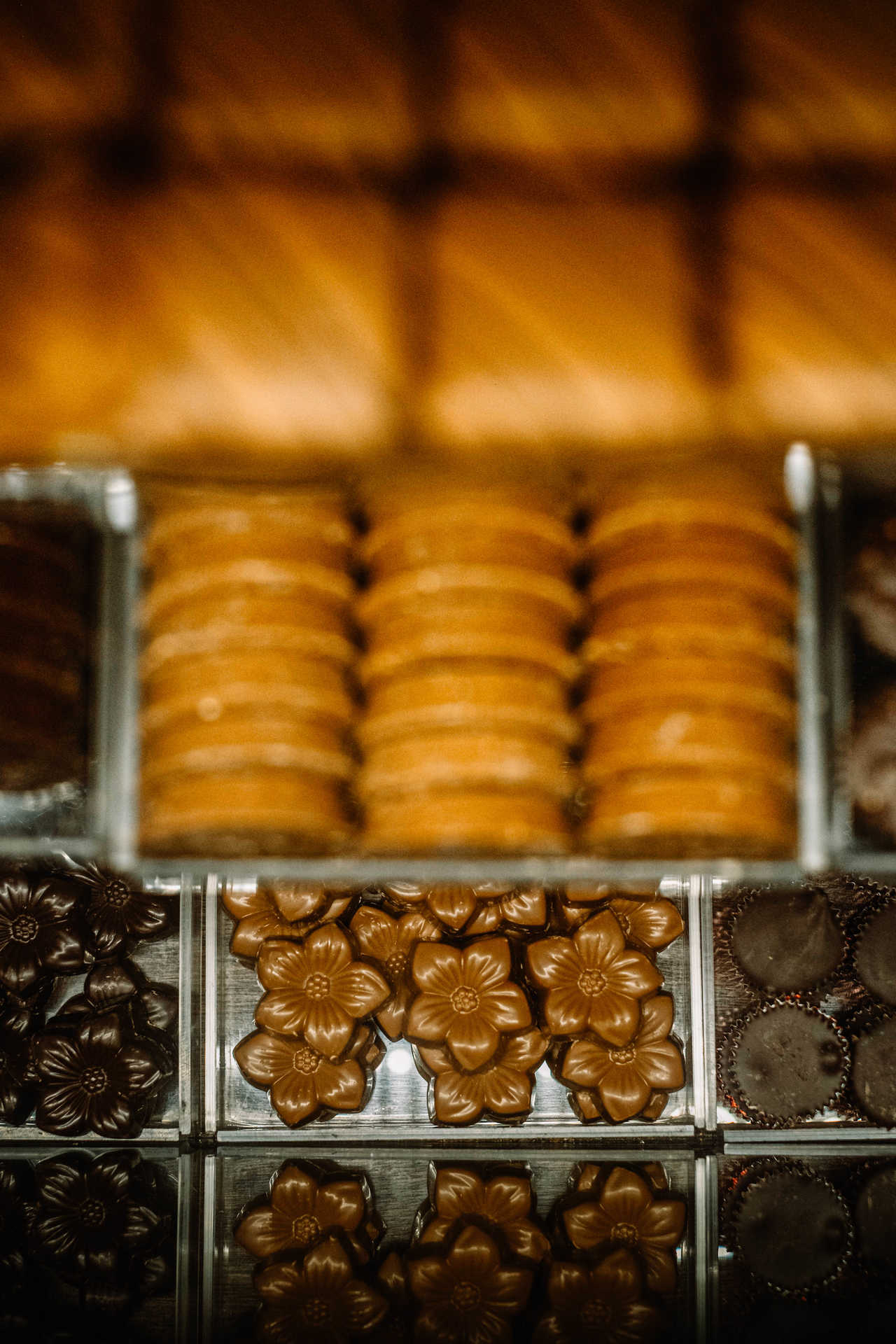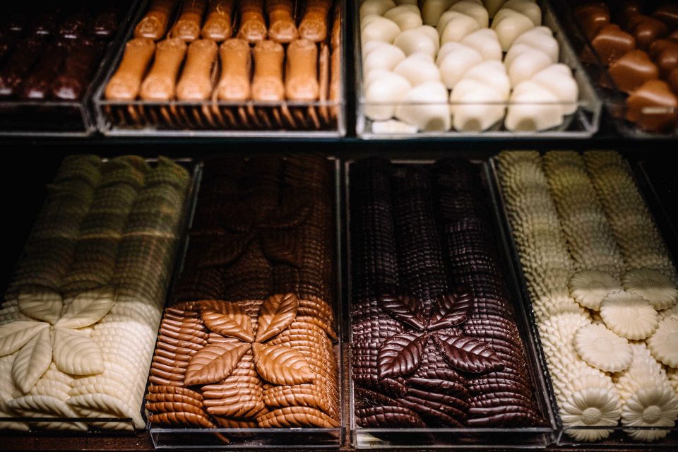 Das prateleiras espreitam também edições limitadas – a propósito do Dia dos Namorados, por exemplo -, e há um móvel reservado para os coloridos macarons. Seguindo em frente, chega-se a uma área onde são feitos, à vista dos clientes, chocolates e as famosas drageias de licor Bonjour.