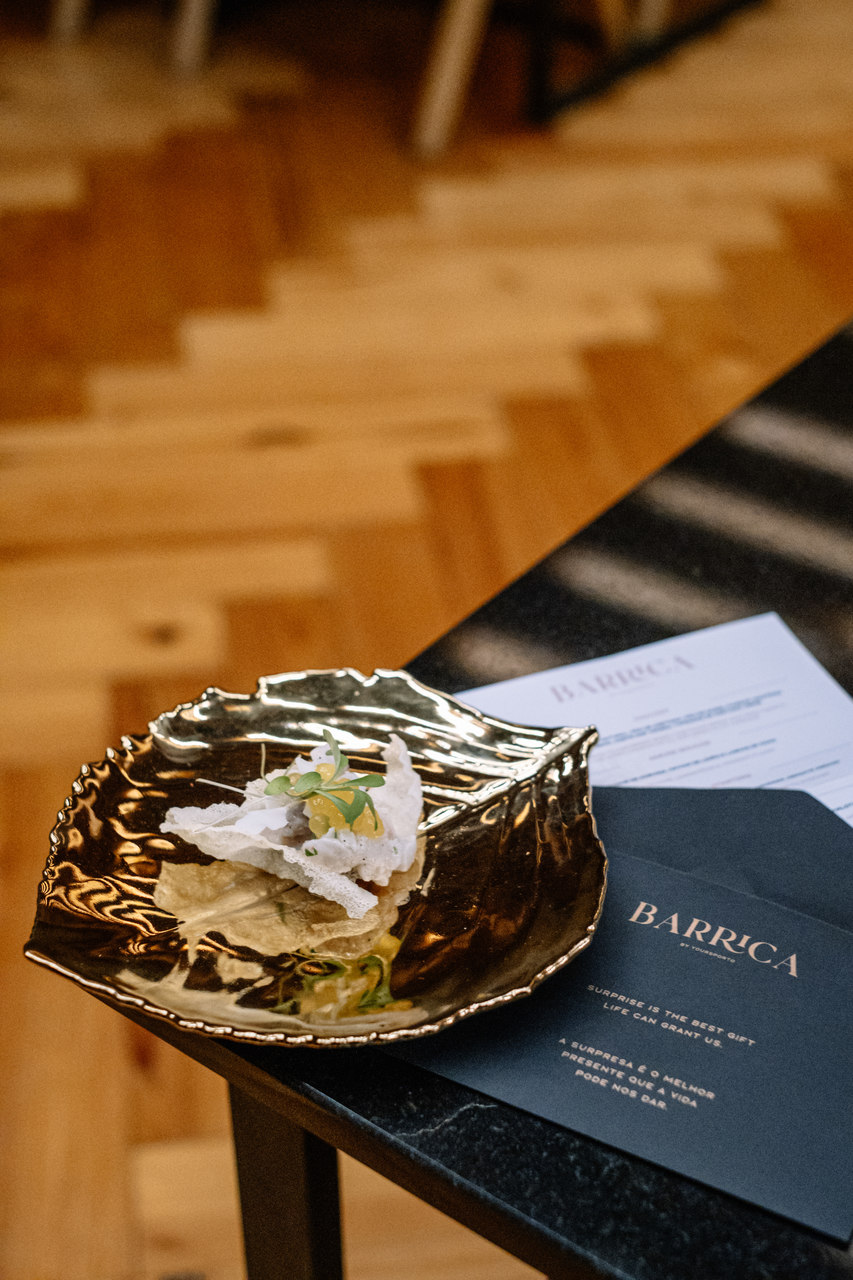 É numa cave de pedra na Rua de São Miguel, no mesmo edifício do alojamento local Pipa D’Oro, que se encontra o restaurante Barrica, inaugurado recentemente. Ambos os projetos são do grupo YoursPorto, que conta com outros espaços de restauração e alojamento, entre eles o Alibi. Mas este novo negócio tem uma particularidade: serve apenas um menu de degustação, ao jantar, e é surpresa. Os pratos, que mudam a cada dia, constam de um envelope entregue ao cliente no início da refeição, e cabe-lhe decidir se cede à curiosidade ou se deixa levar pelos sabores que vão desfilando, tentando adivinhar do que se trata.