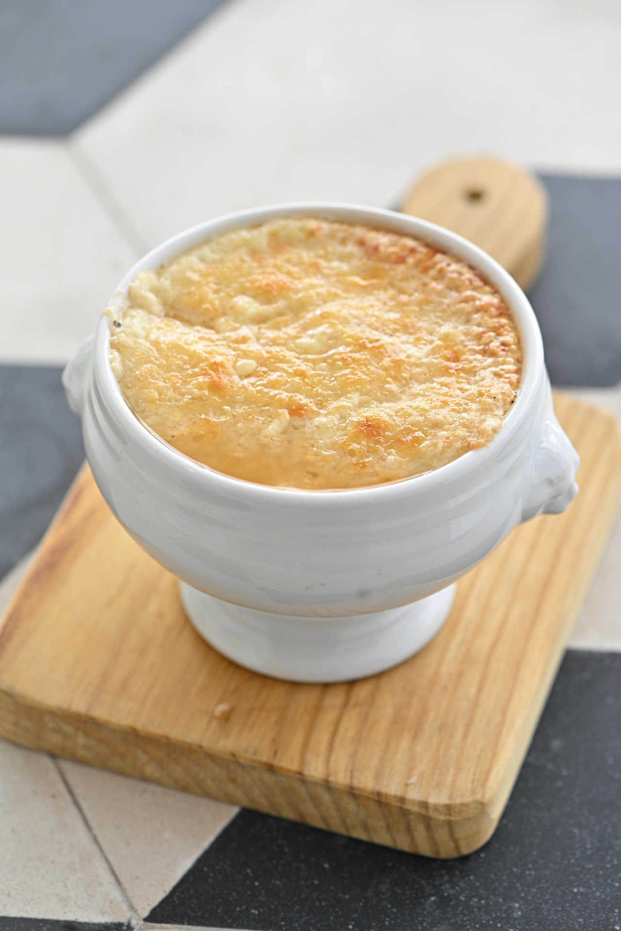 - Vista do pátio para a cozinha e, ao lado, a sopa de cebola. (Fotografias de Pedro Granadeiro/GI)