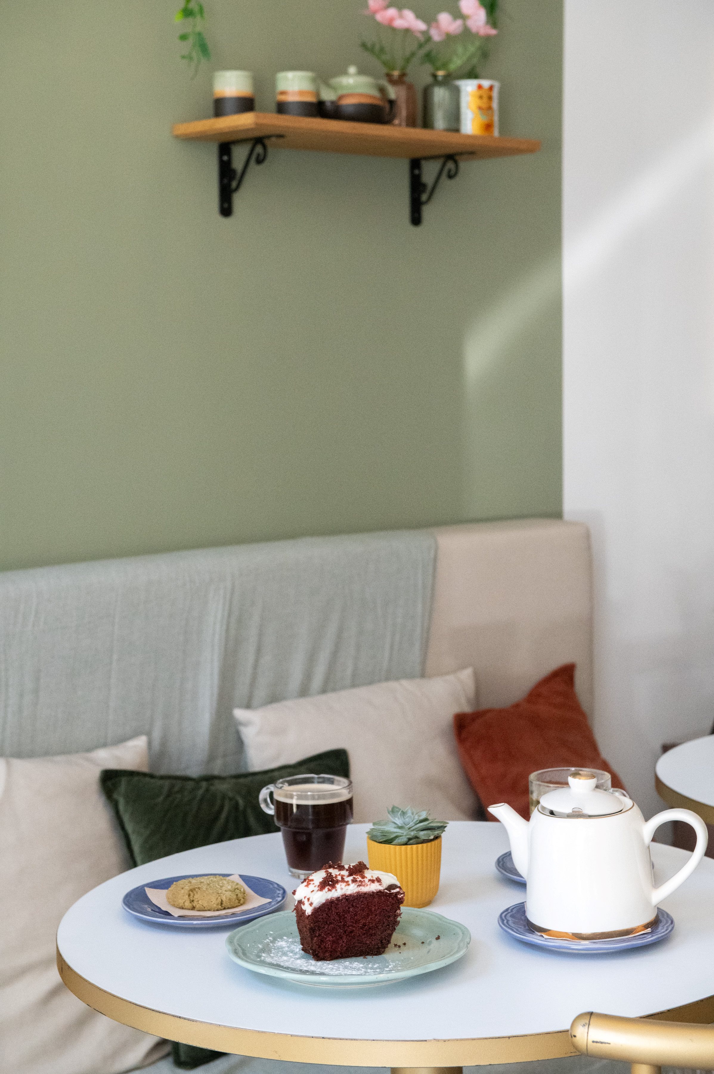 A literatura é um dos pilares do Potts – o nome é uma referência a Mrs. Potts, a governanta do filme “A bela e o monstro”, que se transforma num bule de chá -, feito também de outras “paixões” das três amigas: “O chá, o café, os livros, os bolos e o vinho”, revela Diana. No que toca aos doces, é ela quem mete as mãos na massa para compor diariamente a montra com scones, cookies de vários sabores, muffins e bolos à fatia. O de chocolate, que sempre fez em casa para a família, é também o mais popular no salão de chá – “por dentro é cremoso, tipo uma mousse”, descreve a doceira – mas o red velvet e o bolo de matcha também não lhe ficam atrás.