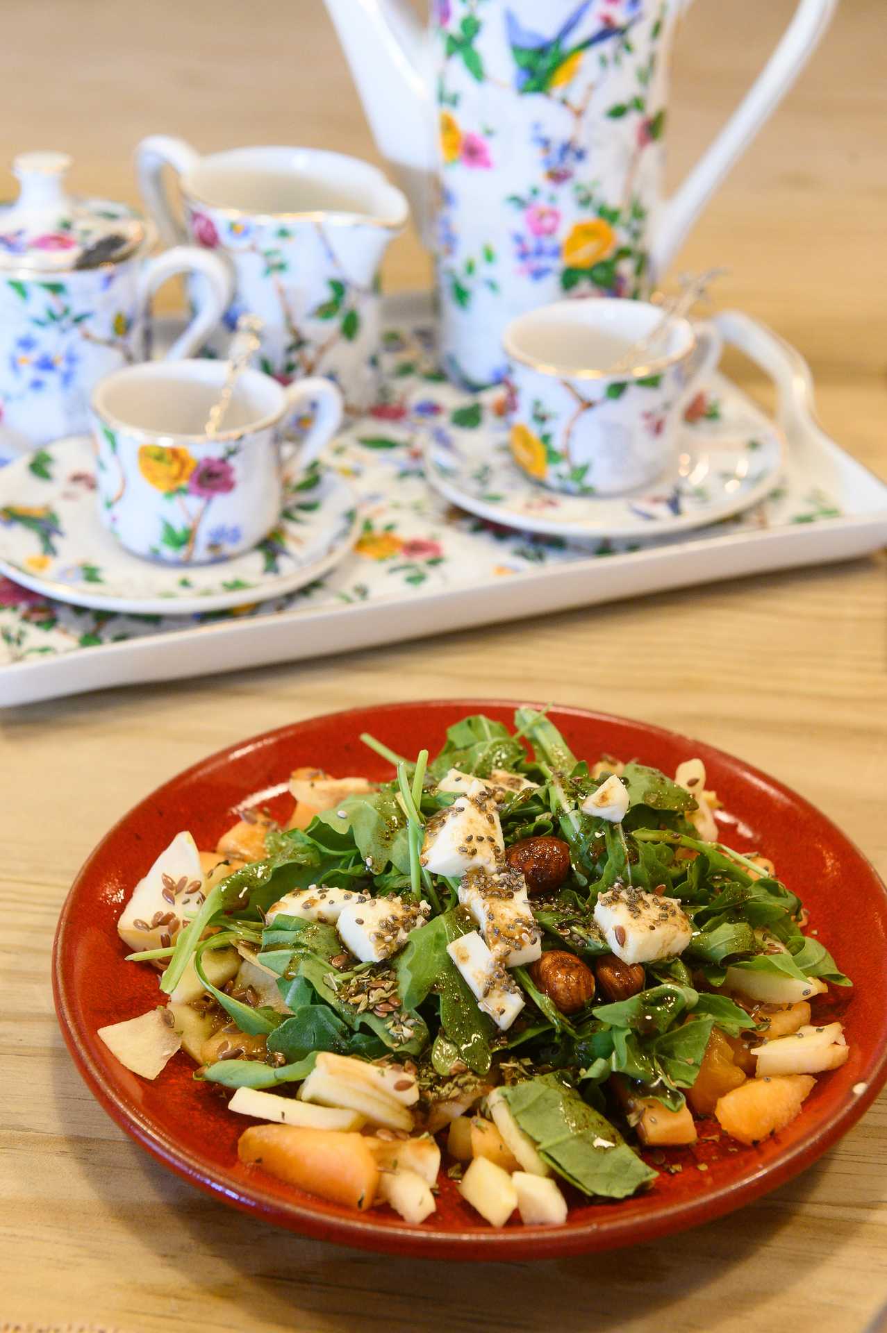 “O objetivo é transpor para a mesa tudo o que vendemos”, explica André, que procura evitar o plástico e combater o desperdício. De fora da loja vêm só o peixe ou a carne, para compor o prato do dia, que pode ser, igualmente, vegetariano. Não admira, tendo em conta que aos artigos de mercearia habituais junta algumas opções para veganos, celíacos e intolerantes à lactose. Há desde frutas e hortaliças até leguminosas, cogumelos biológicos, granolas e biscoitos caseiros, vinhos, presunto, conservas, compotas, patés, queijos ou as chamadas bliss balls (bolas energéticas de cacau e góji).