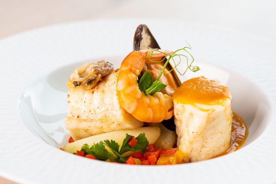 Entre os pratos de peixe, o destaque vai para a tradicional caldeirada à moda de Peniche, e nas carnes, entra em cena o porco malhado e a maçã de Alcobaça. Pormenor descritivo: o porco malhado é a terceira raça autóctone do país, resultado de um cruzamento entre as raças Inglesas yorkshire e berkshire com a raça portuguesa bísaro. Há também um naco de novilho com puré de batata olho-de-perdiz, uma das variedades produzidas no oeste.
