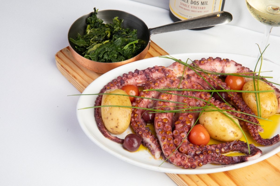 Faz-se aqui uma excelente massa negra com gambas e tomate seco, que mais não é que massa de tinta de choco salteada com o marisco e temperada com o tomate seco. Cromaticamente resulta muito bem e boca sabe muito bem, ligações felizes dos ingredientes entre si. Maravilhoso, feito para vencer é o polvo à lagareiro cozeduras apuradas e definidas, fusão de sabores e texturas de gabarito. Há uma belíssima alheira de caça com batatas fritas e ovo que fica na memória, assim como o lombinho de porco com migas de alheira, integração perfeita e muito sabor. A partir de lombo Angus, a casa propõe um fantástico naco grelhado, processado com precisão para evitar que a cocção seja excessiva.