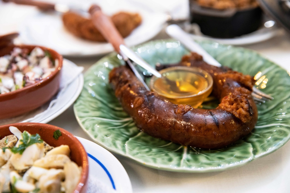 A configuração da sala revela de imediato a vocação petisqueira e aqui, mesmo que não avancemos para pratos mais elaborados, temos já acesso a especialidades primorosamente executadas. As saladas de polvo e de búzios têm temperos cuidados e cozeduras imaculadas. Serve-se um requeijão caseiro que apetece sempre. As enguias fritas são deliciosas, bem tratadas por quem sabe e com o vinho certo a fruição é mais que garantida. Também aqui encontramos morcela de arroz assada perante a qual ninguém se faz rogado.