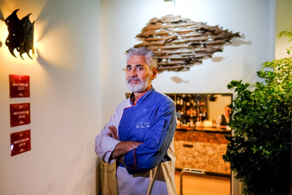 O chef Luís Brito e a sua mulher Cláudia Abrantes, sommelière da casa, são a alma deste restaurante único. Instalado num aquartelamento altaneiro, de vista deslumbrante e particularmente inspiradora, é lugar de que nunca mais queremos sair. Seguimos o menu aconselhado e apercebemo-nos da excelente compleição intelectual do chef Brito e da sua grande estratégia para nos tornar mais felizes. O cardápio assim organizado revela-se particularmente acertado, por configurar viagem de sensações e sabores, em jeito de descoberta. O início é algo inesperado, mas muito bem resolvido face ao nome do prato, Homenagem à Ilha da Madeira, gelado/milho/banana, autêntico salto tropical repleto de sabor e textura que faz o corte com o mundo exterior. O segundo momento situa-nos aqui mesmo, na Ria Formosa e a proposta é choco/arroz/limão verde, em jeito de hino. Segue-se o momento Lavagante azul, que conta com a assessoria de tártaro de boi/cardamomo/óleo de abóbora, prato desafiante a propor com arrojo a interação mar-terra como só Luís Brito sabe dominar. Na proposta seguinte, Peixe de linha, a trajectória é cavala fumada/caninha/umbilicus e entramos num certo exotismo, a que de forma alguma nos escusamos, dada a exploração de novas texturas. O momento Angulata é que se segue e é claramente dedicado à ostra portuguesa, cujo nome científico é crassostrea angulata, que sugere cavidade rugosa. A ligação neste caso é feita pela combinação ostra da Ria Formosa/anchova/citrinos. Há que ir entrando na filosofia deste grande criador culinário para entender a elegância e eficácia das suas propostas. Isso fica muito claro no momento que se segue, Feito no Zambujal, evocação continental com presa de porco ibérico/espinafres/jus. Estamos no mundo da carne, brilhantemente proposto. A presa é uma das peças mais exigentes do universo suíno e a delicadeza é a tónica deste prato. O último momento é História de Al-Andaluz e á uma sobremesa eminentemente cítrica, composta por mandarina/mirra/bela luisa. Marca o termo da refeição e tal como disse no início, daqui nunca queremos sair. A menos que marquemos lugar para a próxima visita.