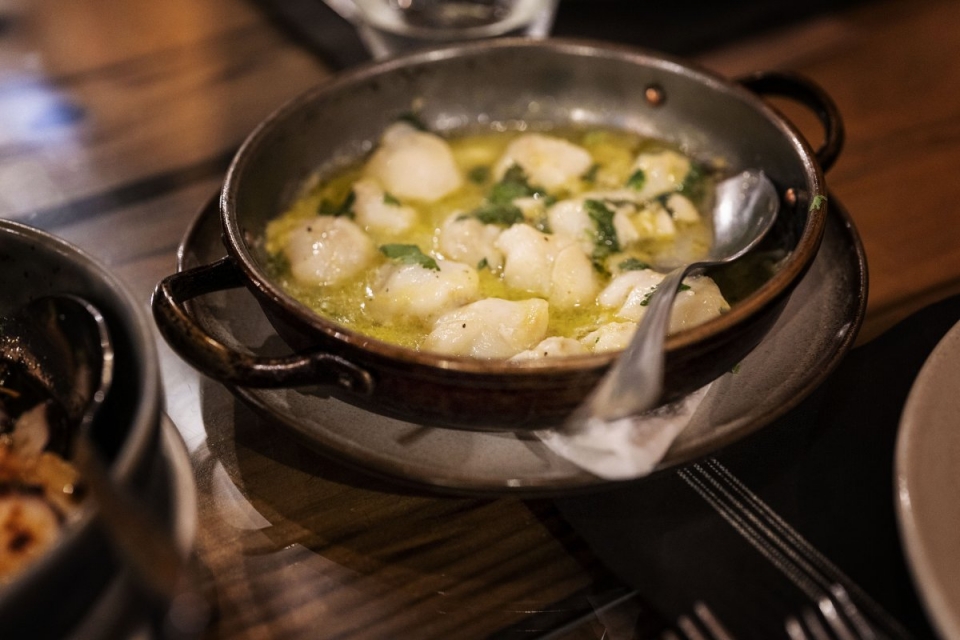 Fica-se fã das bochechas de bacalhau à Bulhão Pato pelo arrojo e pela novidade. Não faltam os proverbiais pastéis de bacalhau, feitos a preceito e muito saborosos. E fazem-se aqui cogumelos ditos à espanhola, salteados em azeite, alho, cebola e pimentos. Passamos à secção dos petiscos e a voracidade declara-se. Sou adepto fervoroso de iscas de fígado e aqui serve-se a iguaria de vaca grelhada, a que me entrego sem qualquer hesitação. Adoro a linguiça frita com cogumelos, que se explora de forma suprema com pão ao lado. O pica-pau de porco ibérico de Bruno Monteiro é guloso e desperta vontade de repetir muitas vezes. É isso de resto que faço.