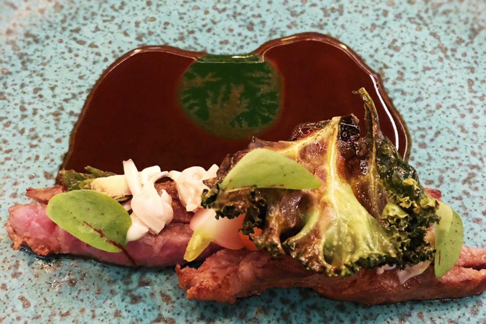 Entre os seis momentos do menu de degustação, no meu caso maridado com vinhos (mas poderia ter sido com cocktails ou cervejas), gostei de tudo, mas elejo a presa de porco preto. Primeiro por se tratar de um prato de matriz portuguesa, que parte da receita à alentejana, conhecida de todos, para algo muito melhor a todos os níveis — a começar pela escolha de uma peça que, para quem não sabe, vem da parte gorda do lombo superior do porco, situada sobre a cartilagem do quarto dianteiro (mão) do animal, e por isso muito mais saborosa, marmoreada e não tão calórica.
