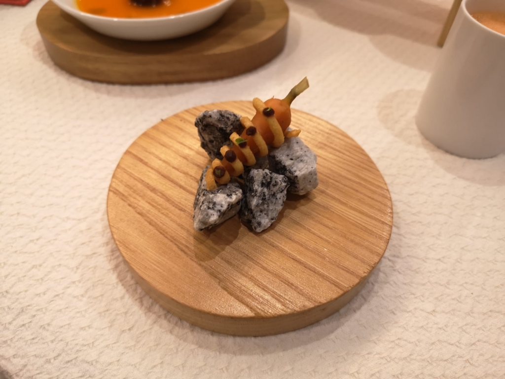 É o caso dos snacks que abrem os menus de degustação, que é cenoura de sete maneiras diferentes e todas elas um desafio visual e no paladar. Há um pickle enrolado numa espiral crocante, um gelado que se barra como manteiga num pequeno bolo sovado e um sanduíche que se devora de uma vez. O mexilhão, por seu turno, prova-se primeiro sorvendo-o de meia lima, ou ainda curado e em mousse. Já os míscaros chegam em bolacha e mousse.