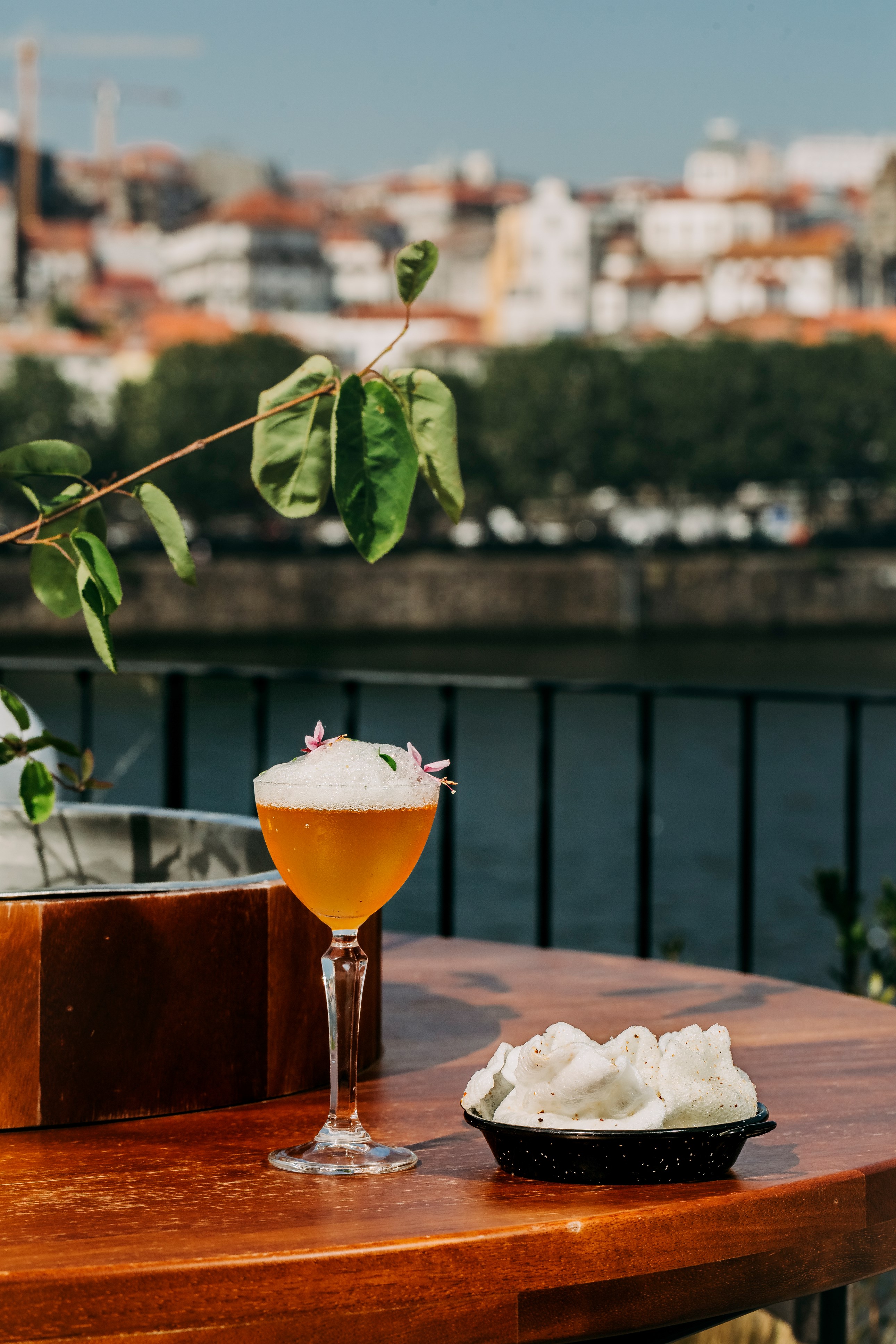 Os queijos e enchidos italianos, o pastel de vento com carne de sol do Brasil, os kati rolls indianos, com butter chicken, e as gambas Sichuan da China completam a volta ao mundo no prato. Mas a viagem não se fica por aqui. E porque a vista também convida a beber um copo, a lista de cocktails e mocktails foi reforçada com novas misturas de assinatura que revisitam igualmente as maravilhas mundiais (as modernas e as da antiguidade). As bebidas “combinam os licores e destilados mais emblemáticos dos países de origem destas construções com frutas, ervas e especiarias locais”, informa Diogo Magalhães, diretor de F&B do hotel.
