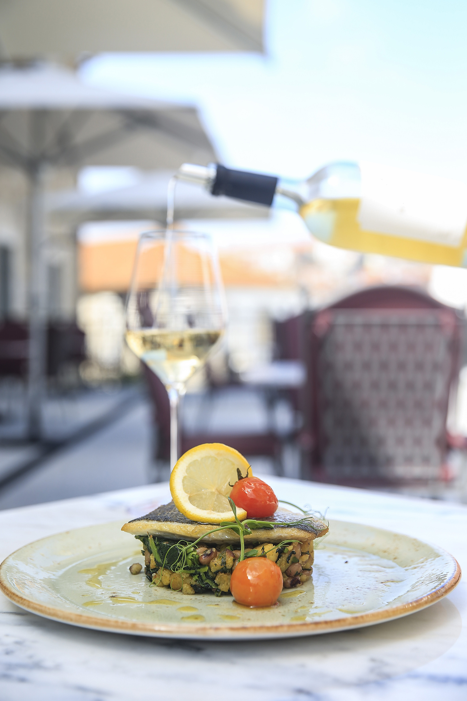 - Dourada, migas de feijão frade e grelos, azeite de tomilho. (Fotografia: Artur Machado/Global Imagens)