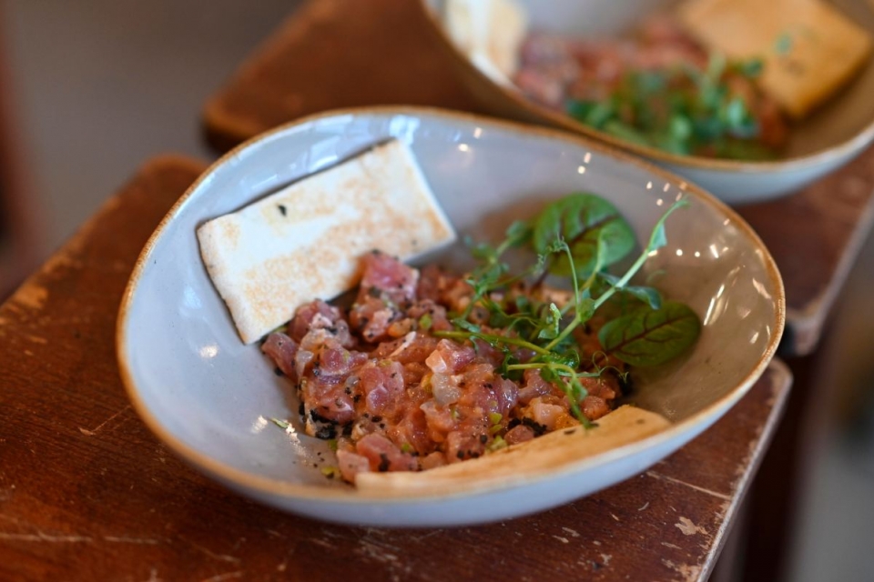 O restaurante é uma das mais frescas adições à restauração local e veio reforçar a oferta de marisco, com uma carta feita essencialmente do mar. “Quis trazer para aqui comida de verdade, à base do produto, da cozinha tradicional portuguesa, e muito focada no marisco”, descreve o proprietário, que por vezes também assume as rédeas da cozinha para fazer, por exemplo, um arroz de lingueirão. Heranças de família, como os croquetes de bacalhau, que são receita da mãe, assim como o bacalhau à sua moda, que termina no forno com claras em castelo, também figuram no menu, onde sobressaem ainda as travessas de marisco, compostas pelos achados do dia, e o prego de atum em bolo do caco, que assume o protagonismo na lista de snacks.