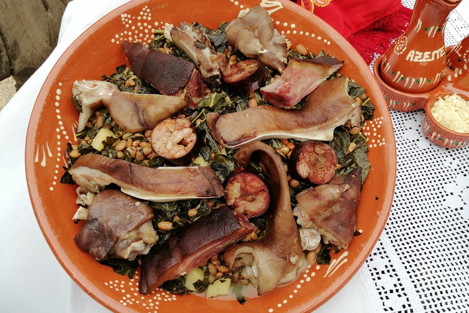 Para a preparação deste prato utilizam-se os produtos da região: carne de porco, enchidos, couve-galega segada, feijão amarelo, batatas cortadas aos quadrados, azeite e alho picado.