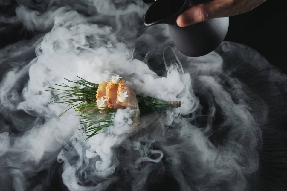 Tanto o Kiri como o Yama (de oito e nove passos) recriam o tradicional menu kaiseki e ganham vida na cozinha aberta, sendo levados a cada um dos 18 lugares da sala com uma coreografia milimétrica, precedida pelas escolhas da sommelier Eveline Borges. A primazia dada ao peixe e marisco atlântico traduz-se em peças de nigiri de peixe-galo, lula e diferentes partes de atum; e até numa das sobremesas feita com caranguejo, texturas de iogurte e mousse de bergamota.