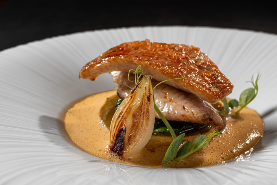 “Em termos culinários conseguimos ir buscar um pouco do melhor que se produz de norte a sul e ilhas, porque também temos pica-pau de atum, inhame, entre outros produtos dos arquipélagos”, resume. Com a carta de outono já em cena, depois de um couvert constituído por pão de massa mãe caseiro e azeite, chegam à mesa entradas como o atum em conserva caseira com grão-de-bico e escabeche de mexilhão e bolinhos de bacalhau com maionese de caril, bons para aguçar o apetite. “O receituário português é o carril que guia este comboio gastronómico”, continua o chef, e de facto, muitos produtos correspondem a algumas das linhas regionais que confluíam, em tempos, na estação de Santa Apolónia. Algumas delas decoram a cozinha aberta, como se uma bilheteira fosse. Num salto a Setúbal prova-se salmonete com molho dos respetivos fígados, batata-doce assada e legumes; e num breve voo até aos Açores, um pica-pau de atum, picles caseiros e inhame.