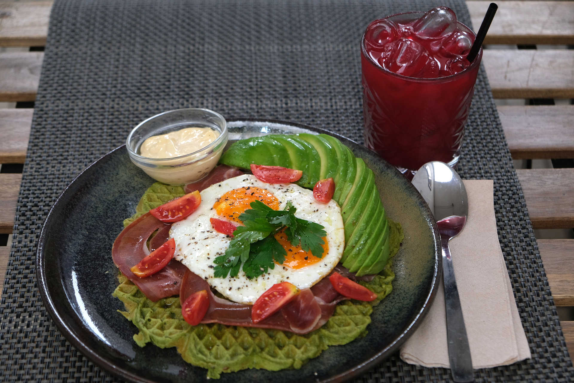 O português Carlos Xavier e a norueguesa Ingrid Bertheussen abriram, em fevereiro, o Snack Shack no Mercado, e criaram uma carta com pratos inspirados nas suas viagens pelo Mundo. O burrito de carne assada durante oito horas e a enchilada de frango El Fuerte levam-nos até ao México, o wrap de atum à espanhola remete-nos para o país vizinho, e o wrap de falafel com húmus e molho tzatziki é uma conjugação de sabores gregos. A sande de panados e o prego no pão não estavam previstas inicialmente na carta, mas houve tantos pedidos por parte dos vendedores do mercado, sobretudo durante os primeiros dias do estado de emergência, em quase tudo estava fechado, que Carlos e Ingrid acabaram por ceder. Uma outra vertente do Snack Shack são as sugestões para o pequeno-almoço, muito à base de fruta, ora em nas bowls de açaí, matcha ou manga, ora nos sumos naturais. A provar a brunch waffle, com presunto, ovos e molho hollandaise caseiro.
