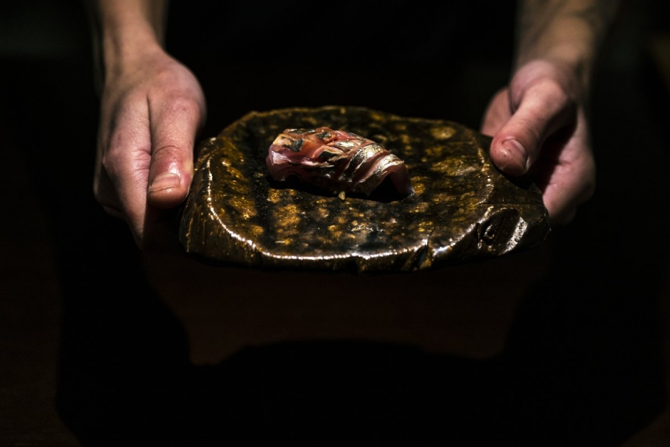 Ricardo Casqueiro, que fez formação com o chef Paulo Morais (à frente do lisboeta Kanazawa, distinguido com uma estrela Michelin) e teve outras experiências na área, dirige agora a cozinha do MA, um projeto partilhado com mais dois sócios: Luís Martins, proprietário do Notes Bar & Kitchen, na Baixa de Coimbra; e Cristina Möhler, empresária e ex-apresentadora de televisão. Ali, Casqueiro trabalha com diversos peixes nacionais: dourada do mar, rodovalho, carapau, salmonete, vai elencando, e atrás de si tem a câmara de maturação onde alguns exemplares ficam até atingirem o ponto certo para ir para a mesa (por exemplo, na forma de niguiri).