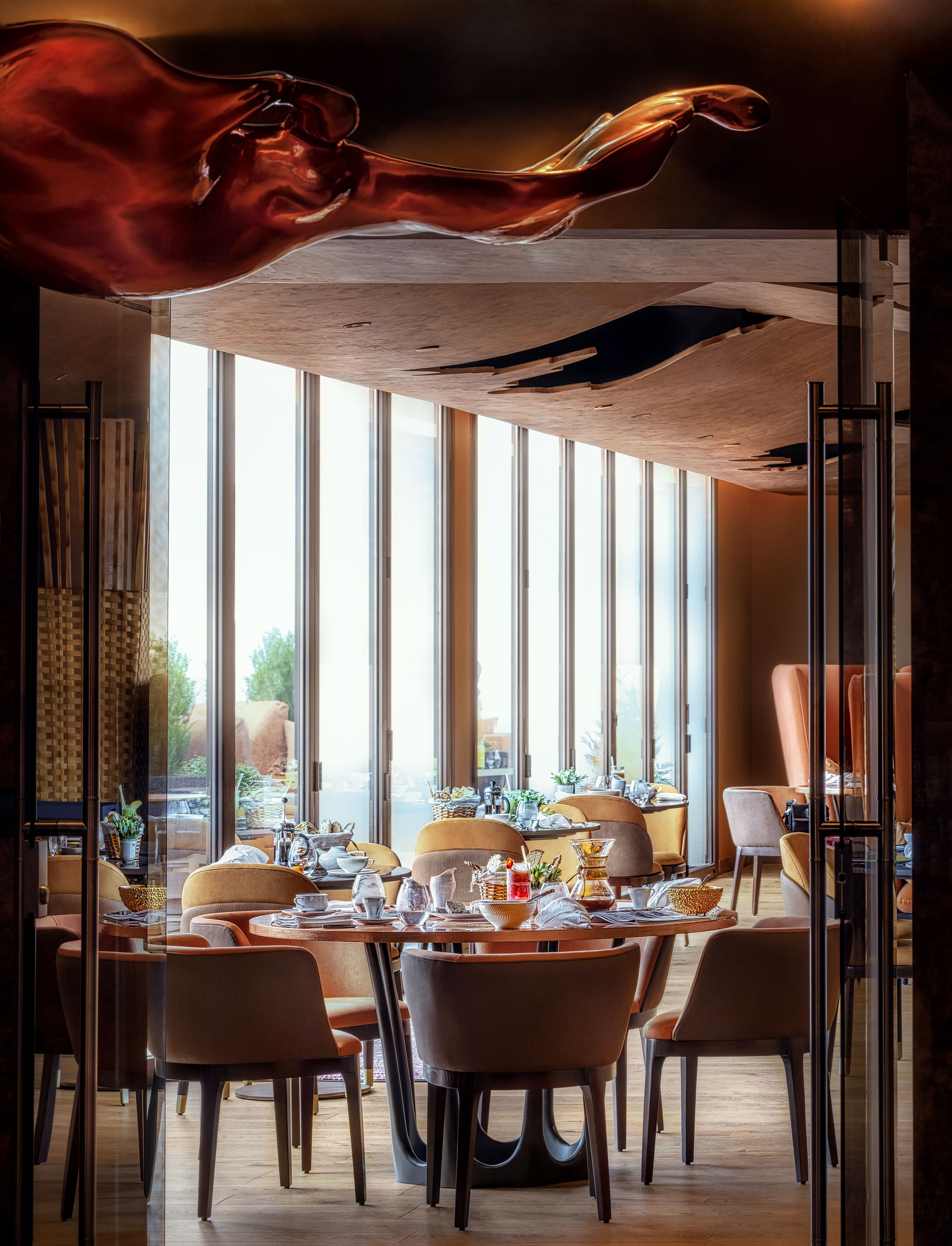 As sobremesas não fogem à regra, como se confere pela engenhosa homenagem à Touriga Nacional, criada em conjunto com a chef pasteleira Ana José Lamela, e que pôs toda a equipa da cozinha a construir pequenas barricas, onde é servida uma recriação das sopas de vinho (ou sopas de cavalo cansado). A estrutura inspirou-se também na escadaria central do hotel, que é abraçada por uma gigantesca pipa desconstruída. No topo, frutas vermelhas e bolo de milho ensopados numa redução de vinho com especiarias, que realça as notas mais predominantes da casta: ameixa e cassis, evocam o Douro vinhateiro, em linha com a inspiração vínica do hotel. O tema transparece ainda numa extensa e cuidada carta de vinhos, e na decoração da sala, que se estende para o exterior com uma agradável esplanada sobranceira ao Douro, e vista para a cidade do Porto.