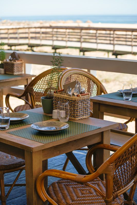 Sopa de peixe tradicional, salada de polvo à algarvia com pimentos, tomate, alho, coentros e azeite e amêijoas à Bulhão Pato com alho e coentros podem ser bons inícios de conversa, e aliados da vista para o mar que a esplanada oferece, estando sobre a duna. Dos pratos de peixe e marisco esperam-se sabores apurados, ou não tivesse o chef de 42 anos uma especial ligação ao mar (e à pesca) do lado dos avós e do pai, que via cozinhar peixe em casa.