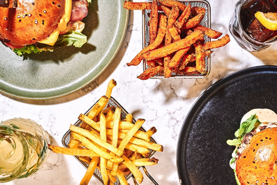 O Stay descreve-se como uma “hamburgueria old-school”, com hambúrgueres à base de carne de novilho. São 14, e todos têm um nome que define a junção de ingredientes. O Truffle, por exemplo, leva chalotas e molho holandês trufado; o Blue Jungle junta queijo gorgonzola; o Fierce vem em bolo do caco com queijo Serra da Estrela; e o Insane combina queijo cheddar, cebola caramelizada e ovo estrelado.