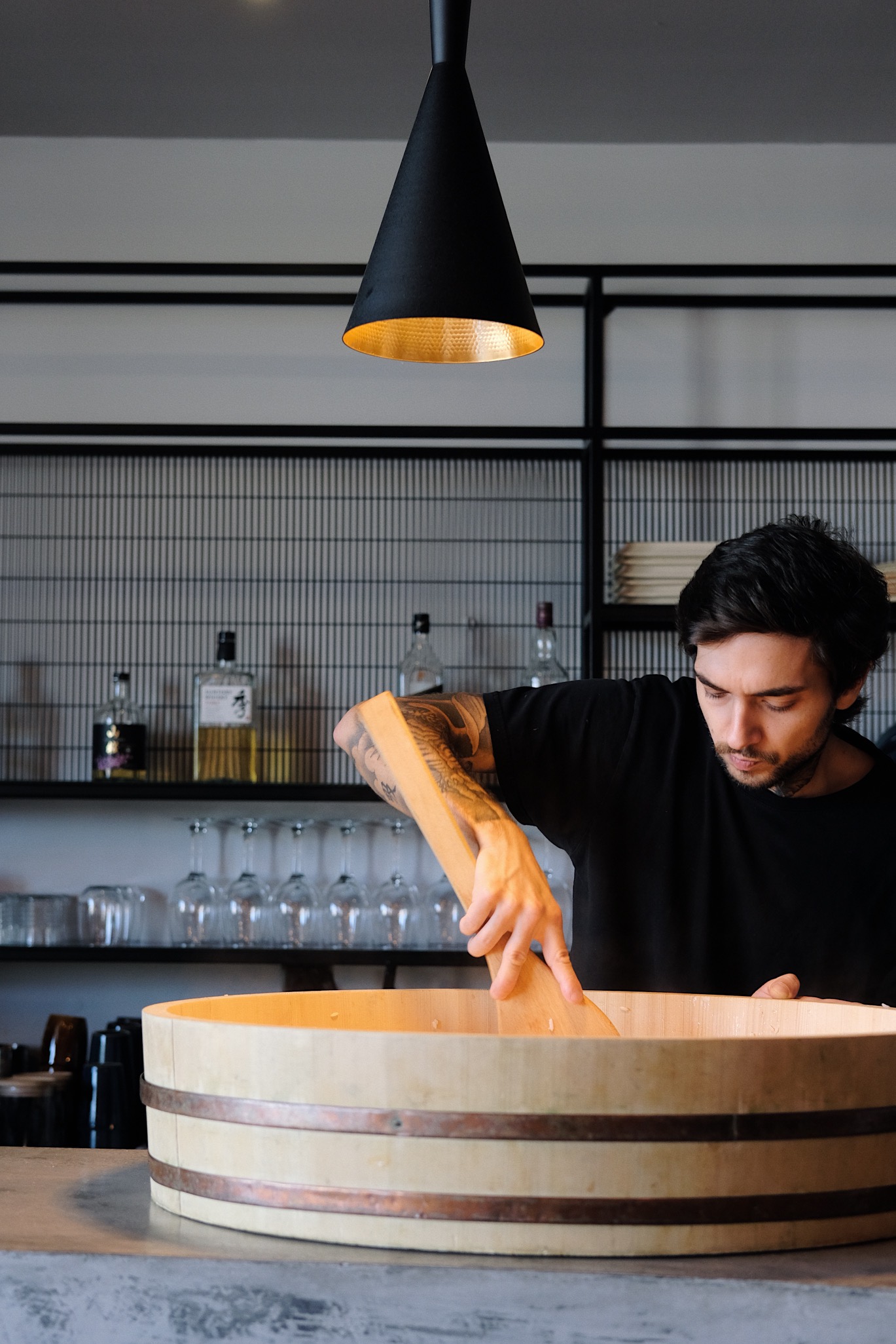 É Evgeny Alinichenko, chef e proprietário do restaurante, quem identifica estas entradas frias como as mais populares da temporada, e que abrem caminho aos combinados de sushi que prepara na barra. Por ser o elemento principal do restaurante – “onde quase tudo acontece”, diz Evgeny -, dá-lhe nome, ou pelo menos uma parte. A outra é uma referência ao ponto cardeal de onde chega a inspiração. “Da Barra vem o sushi, do Este vem a influência da cozinha japonesa”, resume. Abraçou a gastronomia nipónica há dez anos, quando uma oportunidade de trabalho como ajudante de sushiman o fez conhecer as técnicas e sabores daquela que diz ser “das cozinhas que melhor trabalha o produto”.