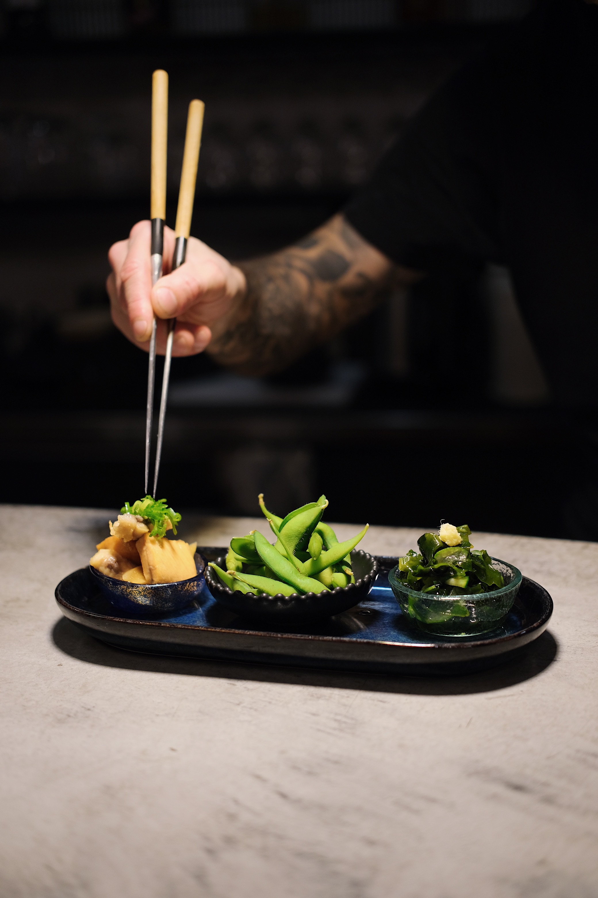 No Barra Este, concilia uma forte vertente de pratos quentes com o sushi, trabalhado de forma clássica, com alguma criatividade, tendo por base o salmão e o atum, mas também outros peixes de época como o carapau, o robalo e o lírio, o bonito ou o sarrajão. Os combinados refletem toda a variedade de pescado disponível no dia. “Agora temos trabalhado muito com a sardinha”, afirma Evgeny. A rainha do verão já chegou à mesa em nigiri braseado, em sashimi ou até panada, a servir de recheio a uma katsu sando. Paralelamente à ementa fixa, o chef implementou recentemente uma carta semanal de sugestões que lhe permite ir introduzindo novidades com regularidade, os chamados “especiais da temporada”.