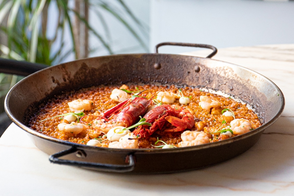 Cozinhado no lume e terminado no forno Josper, o arroz meloso de carabineiro é já o prato mais vendido (e fotografado) da carta do Teimar, aberto recentemente em Campo de Ourique. Tem uma composição vistosa, com dois carabineiros e guarnição de camarão vermelho da costa e gamba-rosa. Com a periferia mais crocante e o interior mais cremoso, representa a comida de conforto.