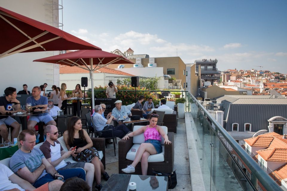 A vista dá de caras para o castelo. Parece que está logo ali, basta estender o braço. Não admira, portanto, que as mesas junto ao parapeito sejam as mais concorridas. Rui Oliveira e Giscard Müller não podiam ter encontrado melhor localização quando decidiram expandir o formato do Nómada para um registo mais descontraído e a saber a férias, numa parceria com o Hotel do Chiado inaugurada no primeiro dia deste verão.