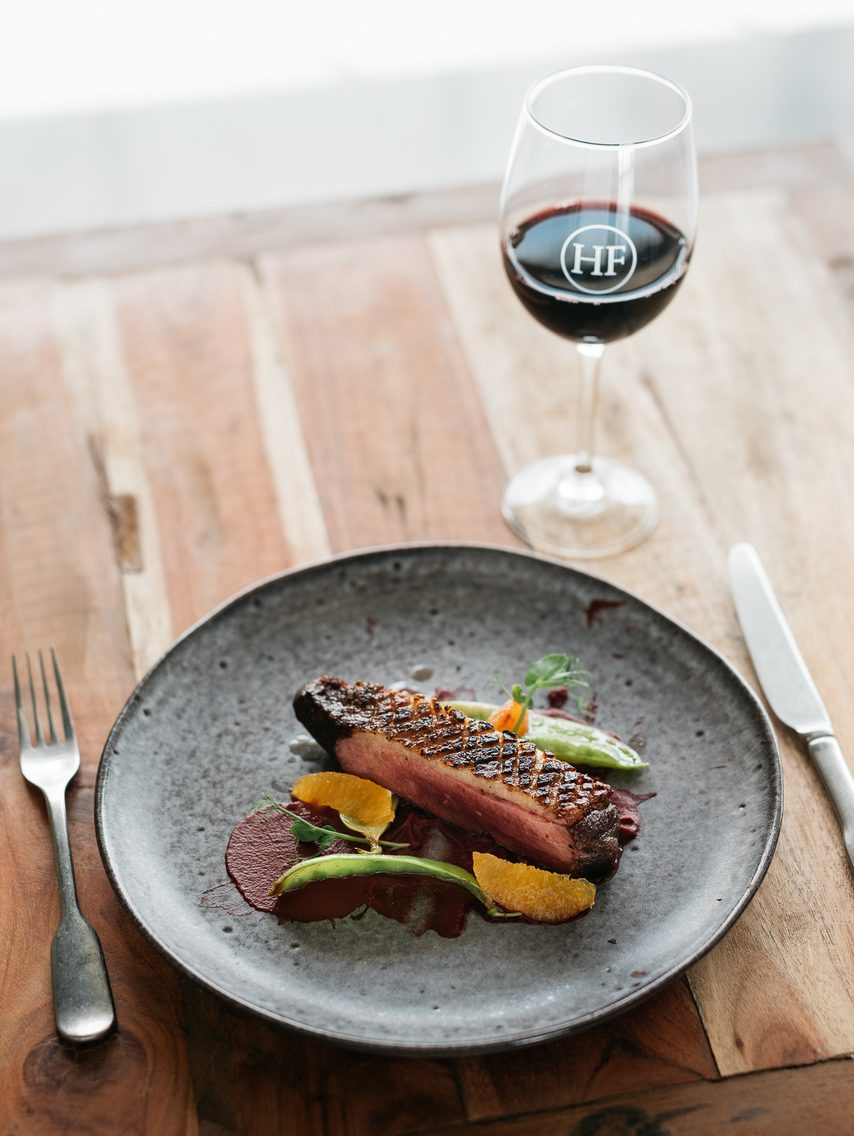 Tudo isto é harmonizado com os vinhos da Howard’s Folly (rosé, branco ou tinto), ou com uma seleção de vinhos de produtores locais, escolhidos a dedo pelo próprio David Baverstock.