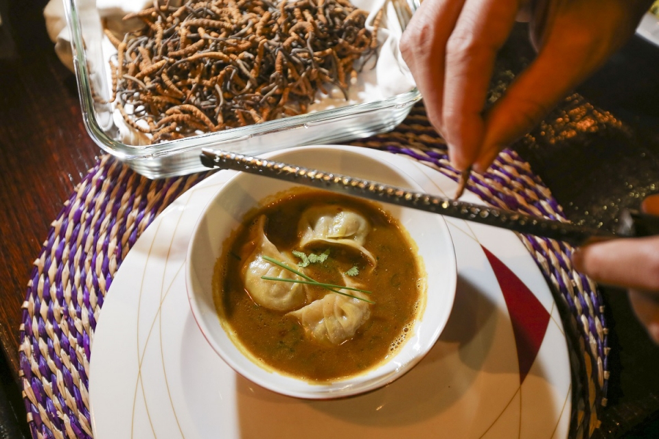 O yarchagumba, fungo raro dos Himalaias, é raspado em cima da sopa.