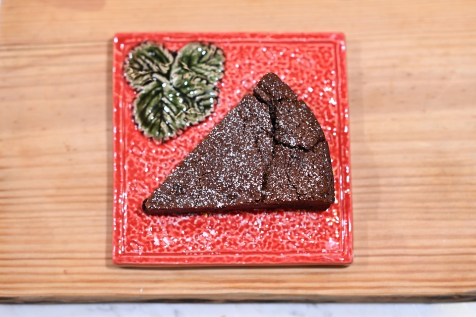 É o caso das três bolachas, das trufas, dos bombons, do brownie, das queijadas, do chocolate quente e do Bolo Demoníaco, uma receita que Pedro Araújo, mestre chocolateiro da Vinte Vinte, aprimorou há muitos anos, depois de várias tentativas. “O desafio era criar um bolo simples em que o foco fosse o chocolate e que nos causasse água na boca”, refere Pedro, explicando que o grande segredo do doce “é a ordem em que os ingredientes entram”. São eles a (pouca) farinha, ovos, manteiga, açúcar e chocolate negro 70% da gama Classic, da Vinte Vinte. Após 40 minutos a cozer a 160 graus, o resultado é um bolo baixo, de sabor intenso e doçura equilibrada, com um interior fofo, a quase fazer lembrar uma mousse, e ligeiramente crocante no exterior. Uma combinação que se desfaz na boca.