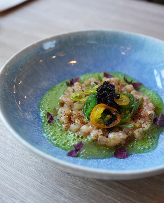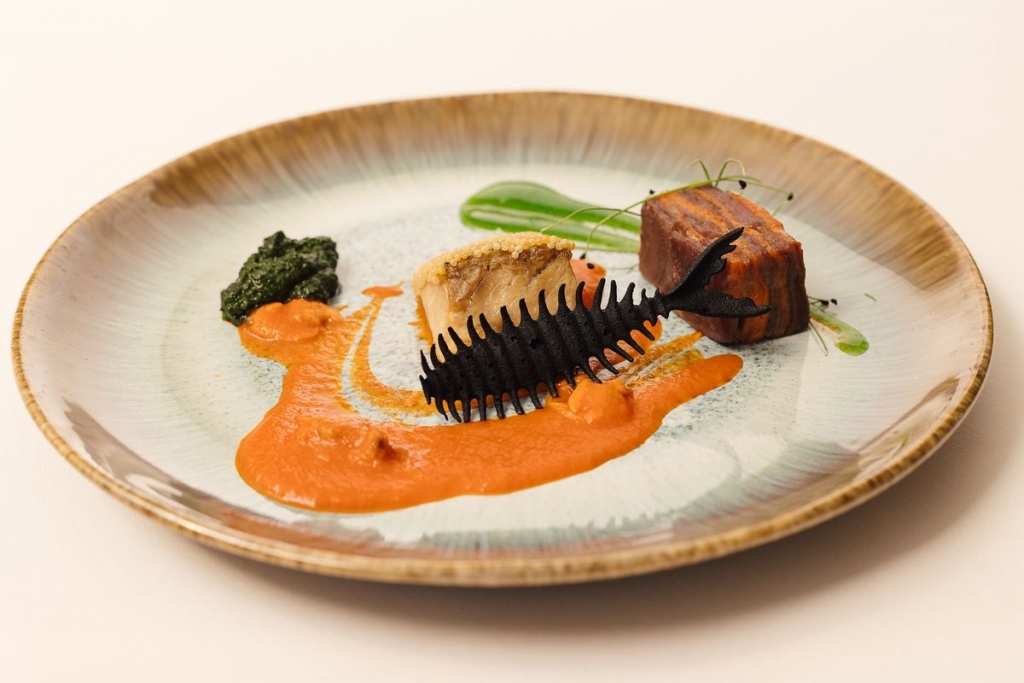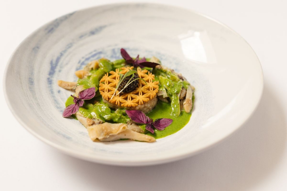 O kiwi foi a fonte de inspiração e surge no amuse-bouche sobre um pão de farinha de alfarroba e especiarias com uma falsa cereja de geleia de ginja recheada com foie gras. Os momentos seguintes trazem lingueirão e molho de coentros, arroz frito e pimento fumado; e choux de cogumelos com brócolos grelhados, couve-flor e papada de porco. Nos principais, peixe do Atlântico corado, amêijoas, gratin de batata-doce e esparregado; e magret de pato, puré de cenoura, maçã e couve.