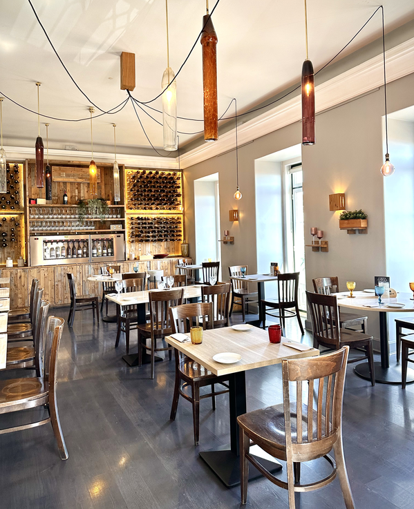 Já a tosta de sardinha braseada com flor de sal e azeite em torricado de broa de milho transitou da esplanada do elétrico para dentro. Os vegetarianos também têm um menu que pode ser harmonizado com vinhos naturais. O vinho, de resto, é uma das marcas do Tágide, que se orgulha de promover os pequenos produtores.