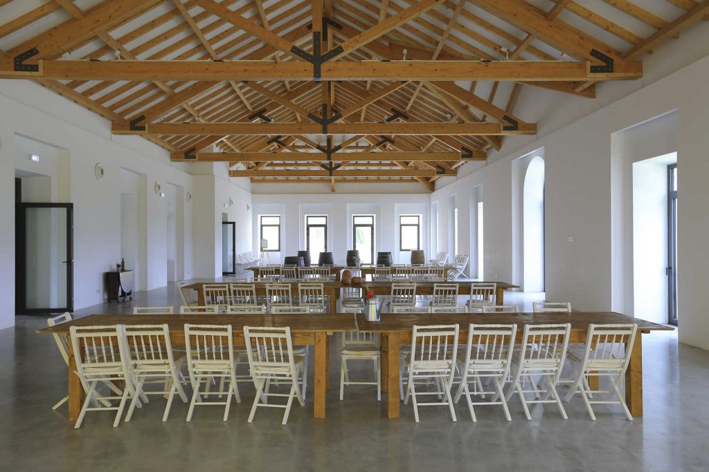 De volta ao palácio. O projeto não está concluído, falta-lhe ainda «a parte mais romântica», brinca Luís, assumindo qual será o passo seguinte: a criação de uma cave de barricas, no piso térreo da antiga casa de campo dos marqueses. Mas o primeiro grande passo já foi dado, com a recuperação estrutural, o restauro da fachada e da capela, e a conversão do piso nobre em espaço de eventos, com um salão para sentar duas centenas de convidados (além de um pátio com o dobro da capacidade) e espaço de provas.