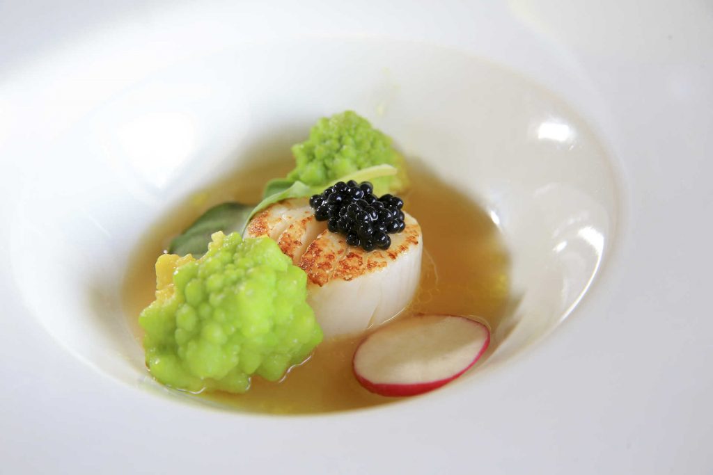 O peixe de rio também lhe interessa, mas, estando em zona de mar, é com essa imensa matéria-prima que trabalha. Com pargo e robalo, por exemplo, que combina com o carabineiro algarvio num arroz cremoso (e guloso) «da nossa costa». A seu lado, brilha o tal alvarinho, à semelhança do restante desfile da prata da casa, ombro a ombro com a cozinha criativa do chef Sequeira. Digno do palácio de um marquês.