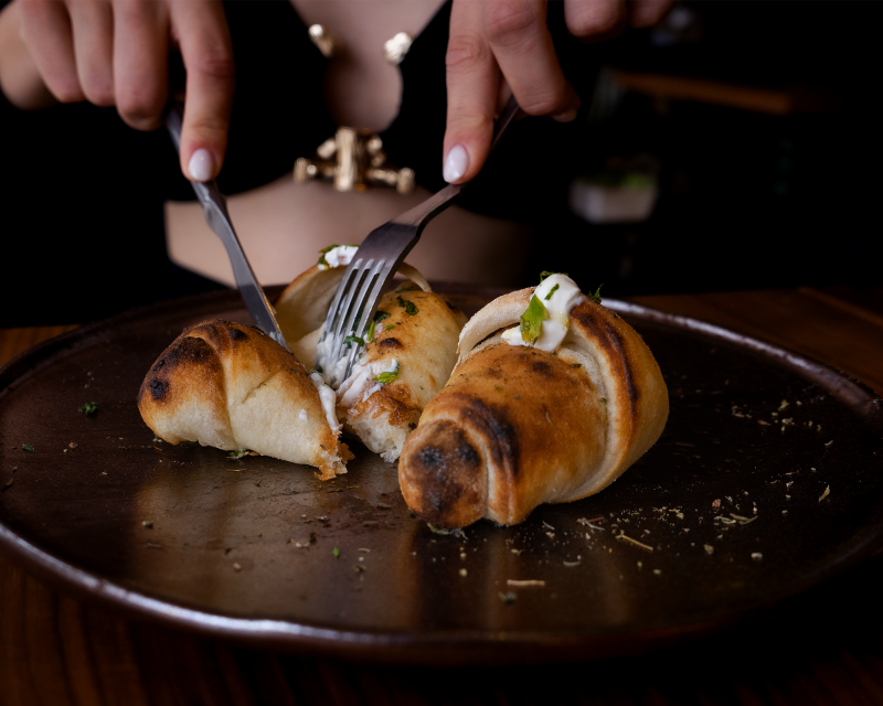 O menu termina com o rolinho de canela e passas (4 euros), também confecionado com massa de piza enrolada e recheada com açúcar, canela e uva passa, com topping de caramelo e chocolate.