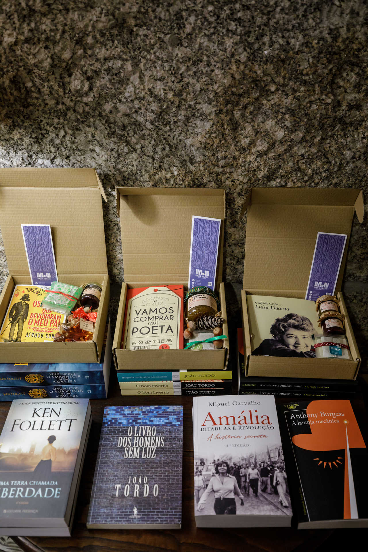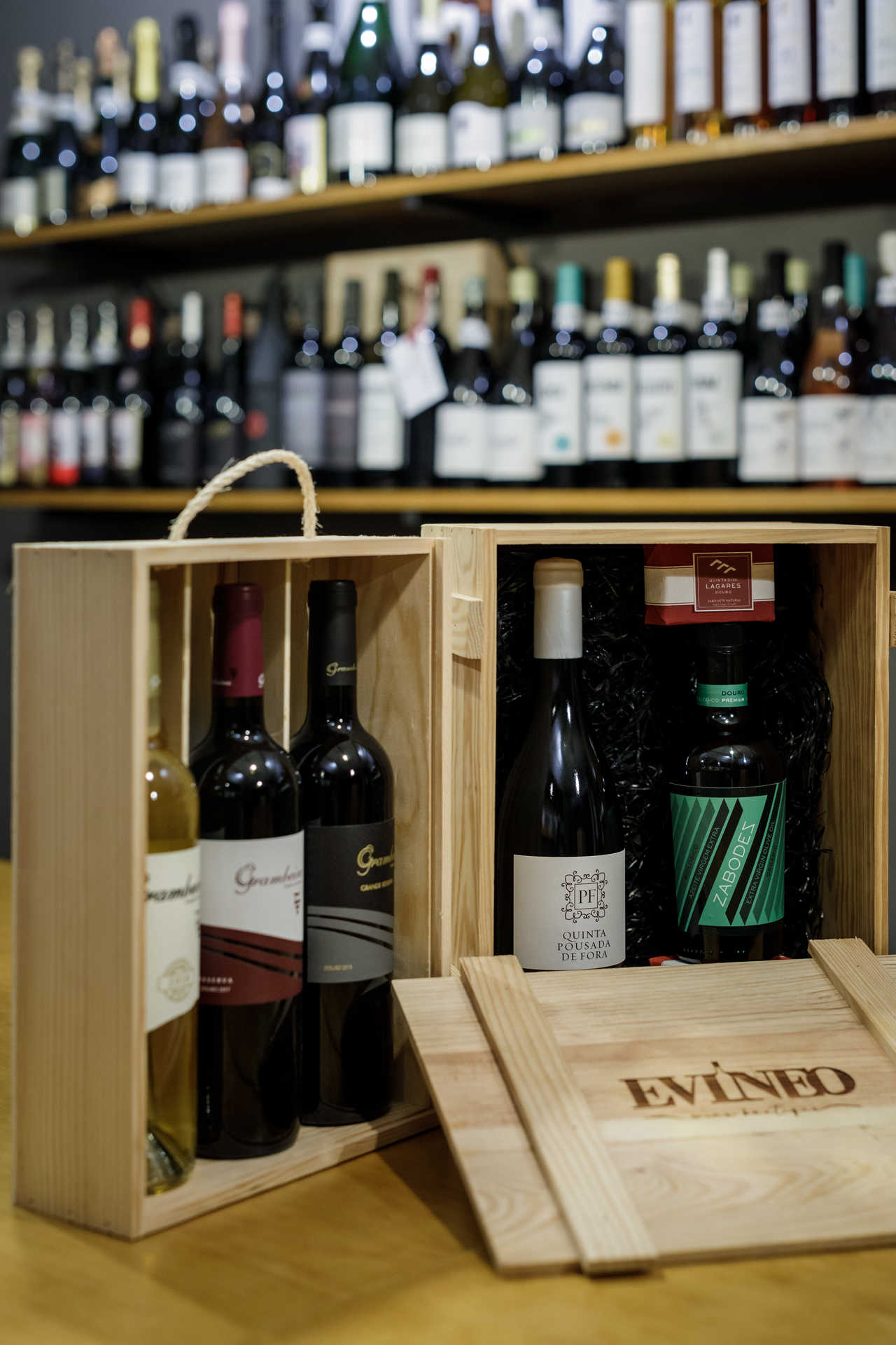 No comércio de rua da cidade há cabazes para todos os gostos, bolsos e tamanhos. As propostas do Rimas e Tabuadas, no Largo Condessa do Juncal, são o espelho do próprio espaço, uma simbiose entre salão de chá e livraria. Nos cabazes cabe sempre um livro à escolha e um miminho (ou mais) para saborear durante as leituras: compotas e biscoitos, licores caseiros, e até chás e infusões do Cantinho das Aromáticas. A dois passos dali, na loja Mercatus da Condessa os cabazes enchem-se de produtos artesanais portugueses. Tudo o que houver na loja pode ir parar dentro da caixa. Fala-se portanto de fumeiro de Vinhais, chocolates da Cacao di Vine, queijos de várias regiões, sabão da Da’ki, canetas personalizadas feitas a partir de videiras, e muito mais. Para os enófilos, a garrafeira e wine bar Evineo propõe surpreender com alguns dos rótulos que ocupam as prateleiras, sobretudo vinhos de pequenos produtores, difíceis de encontrar nas grandes superfícies. Pode encher uma bonita caixa de madeira com “vinhos fora da caixa”, só brancos, ou só tintos; escolher referências apenas de uma região, ou até juntar um vinho do Porto, um azeite do Douro e um sabonete à base de vinho.