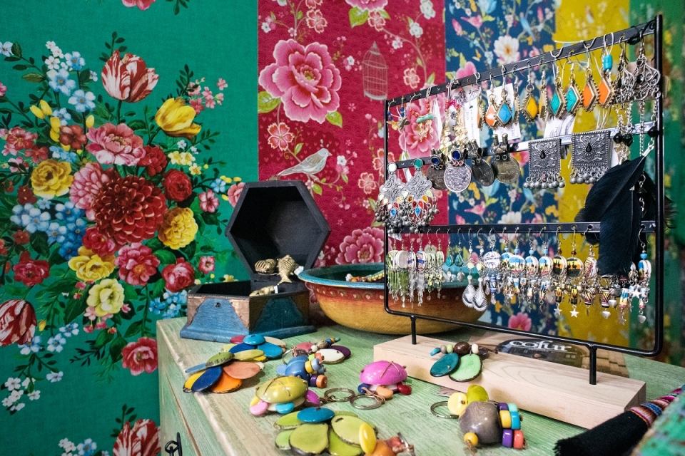 Joana Gagean juntou na sua Tuwaterra peças de cerâmica, têxteis e “babouches” feitos por cá, artesanato vindo de África e ainda o trabalho de artistas.