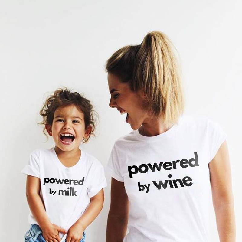 “Powered by wine” e “powered by milk”. São frases divertidas como estas que se encontram nas t-shirts e camisolas desta marca portuguesa criada por Rita e Lara, ambas arquitetas, há três anos. A ideia é que a mãe vista uma e o filho outra, havendo mais opções como t-shirts com as frases “Mau feitio” e “Muito mau feitio” e, até, outras que se podem personalizar com o número de filhos associado à palavra mãe.