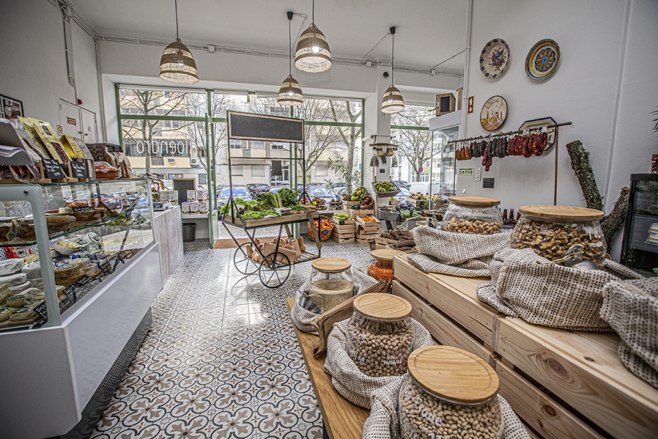 No espaço arejado e bem decorado vende-se tudo o que é preciso para encher uma despensa, desde cebola-roxa e batata-doce de Aljezur a queijos regionais, enchidos alentejanos, bolos secos, pão, chás açoreanos, mel, conservas, granolas, vinhos, cervejas artesanais e piri-piris, entre muitos outros artigos. Ao centro, pode-se comprar frutos secos e leguminosas a granel, também em nome da sustentabilidade.
