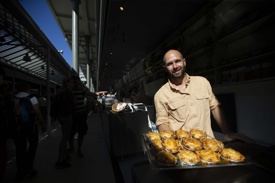 No dia da inauguração do mercado renovado, faltavam ainda 20 minutos para as 17h e já se tinham vendido 600 empadas. “Até ao fecho”, diz Flávio Tavares, cara nova no Bolhão, “pretendo chegar às mil”. Acabou por vender 900, um bom número para este alentejano que já há algum tempo queria abrir uma loja de empadas alentejanas e outros produtos da região no Porto. Abriu então as Empadas do Mercado.