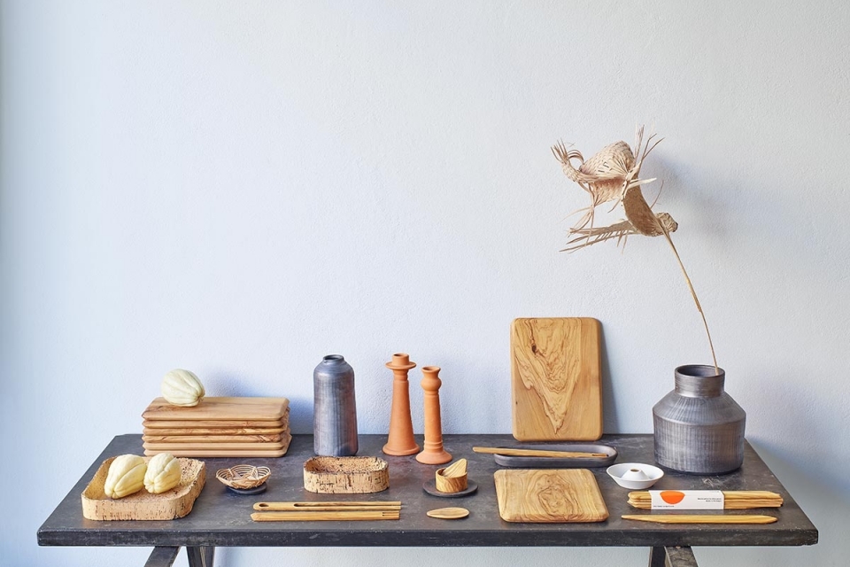 Vassouras, tábuas, gamelas, máscaras, tapetes e cestos fazem também parte deste catálogo de objetos de uso quotidiano. Alguns deles são desenhados por elementos do Home Project Design Studio – como é exemplo as tábuas de azinho, os aprestos de cozinha, de madeira, ou a azeitoneira de porcelana; outros são de artesãos locais, como a cadeira das Furnas, produzida por uma carpintaria na ilha de São Miguel, Açores, ou as bilhas do Carapinhal, em barro, feitas por um produtor de Miranda do Corvo, ou mesmo um curioso conjunto de palitos esculpidos em salgueiro branco, à mão, em Penacova.