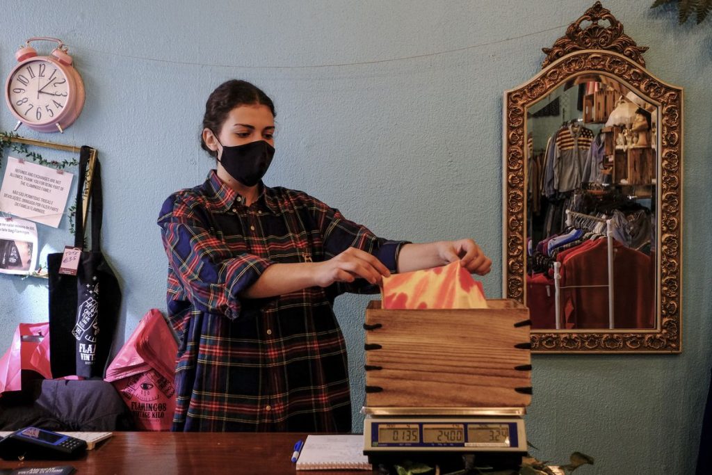 Quase como uma mercearia, também na Flamingo’s Vintage Kilo se vende moda feminina
