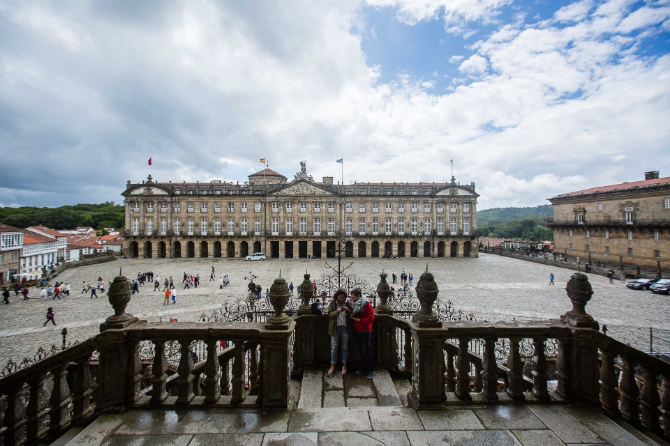 Foi bom admirar Santiago de outro prisma, para lá do apóstolo, das vieiras e das setas amarelas. Para mim, desta vez, a cidade foi bandeiras arco-íris e mensagens contra a violência machista em portas e janelas, festas de rua, polvo à feira, calamares e cozinha vegetariana. Não deixei de visitar a Catedral, contemplei-a da Praça do Obradoiro. Mas, desse lugar onde os peregrinos desembocam, emocionados, guardo nova imagem: a de um casal a dançar ao som de uma tuna, à noite. Fiz zoom com os olhos e recortei-o de entre a multidão. Tão diversas como as motivações para fazer o caminho de Santiago são as maneiras de olhar a cidade, cada um com os seus filtros.