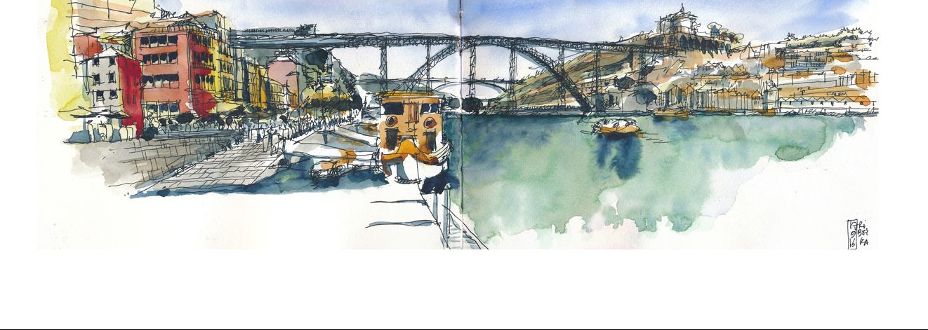 Gabriel Campanário, fundador do movimento Urban Sketchers, desenhou a Ponte D. Luís.
