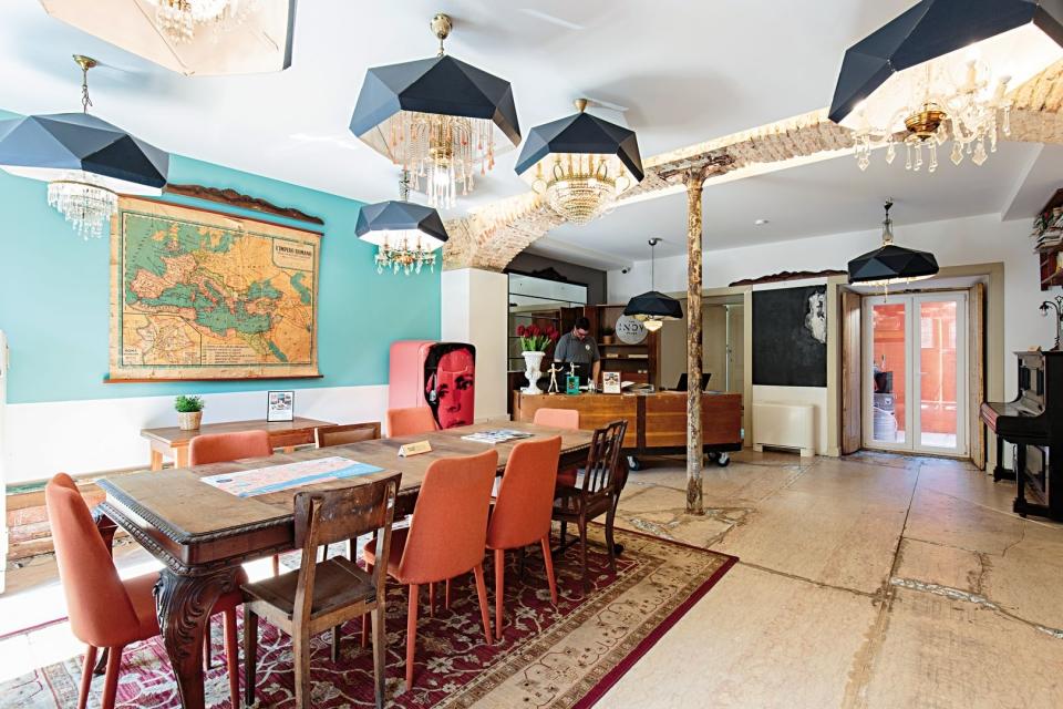 As doze caixas de correio originais ainda estão na parede, mas já não guardam as cartas enviadas para os moradores do Palácio da Bombarda. Deram lugar a objetos decorativos que, apesar de parecerem desgarrados em relação a tudo o resto, são uma pista para compreender o design de interiores do The Indy House, que abriu em agosto de 2017.